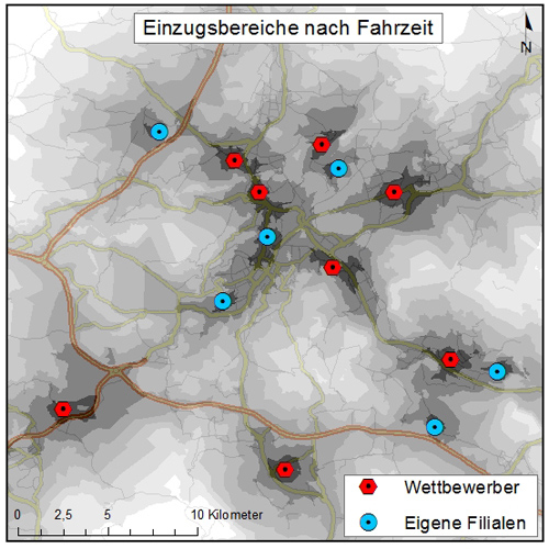 Entfernungsanalysen orientieren sich immer am Kaufverhalten der Kunden. Zur Verfügung stehen: