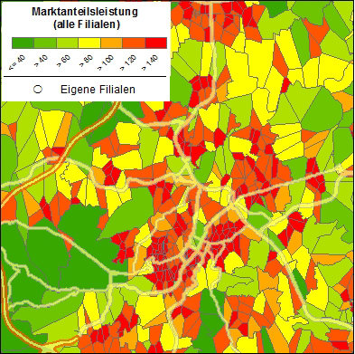 Intensität des Handelsmarketing wird der Ressourcensteuerung weiter verfeinert. ![]() Die Leistungsanalyse vs. Gesamtmarkt dient einer strategischen Stärken-Schwächen-Analyse. Typische Fragestellungen mit Analyseansatz sind: